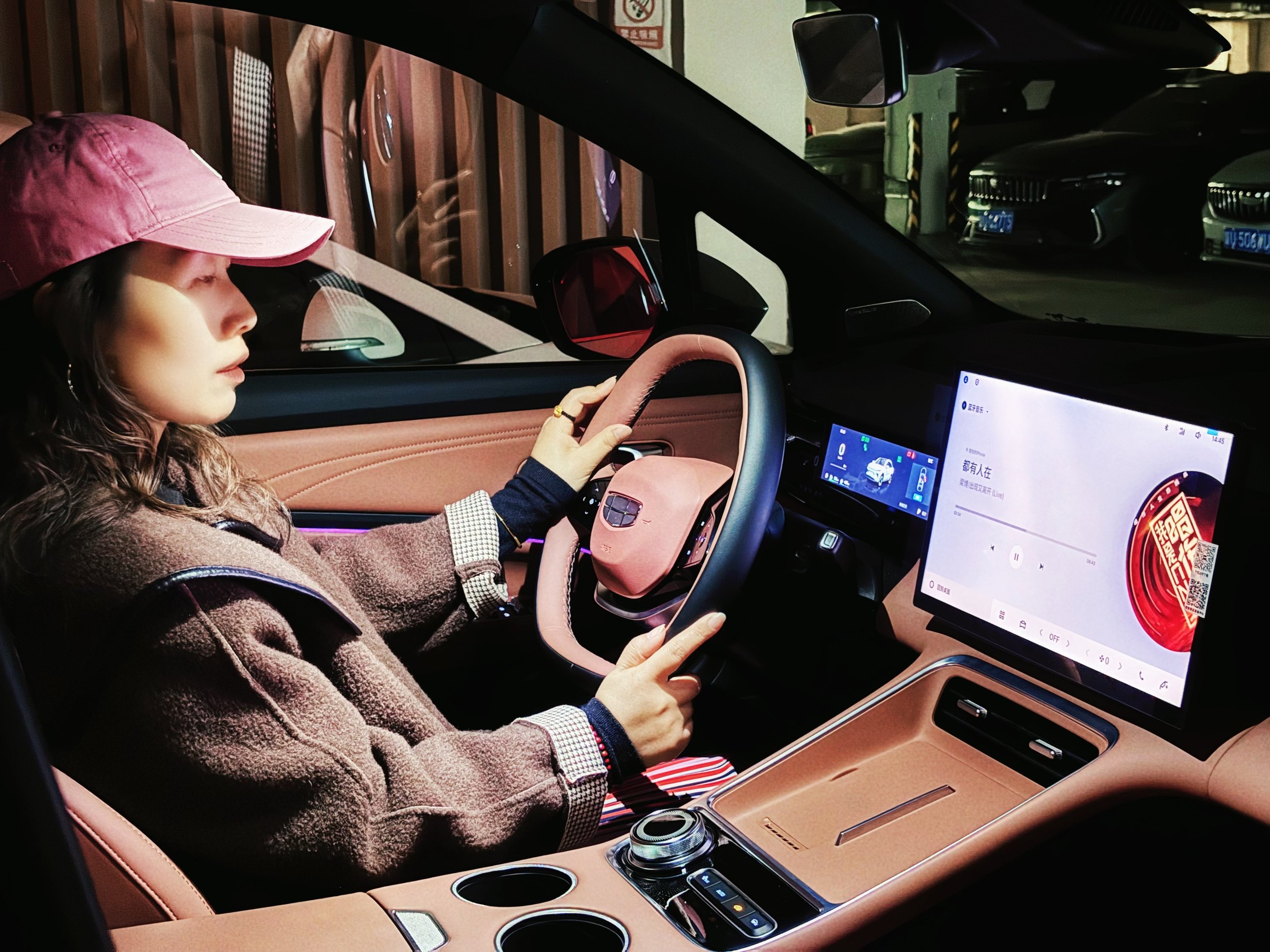 坐进这样的座舱,即使它已经倒车入库,我也愿意为它再保留一首歌的时间。这样的座舱,可以称之为移动的家庭小窝。环抱式的布局,到处都是软乎乎的 皮质包裹,看着就很有质感。悬浮式中央扶手台的设计,手机放上去就能享受五十瓦的无线快充。