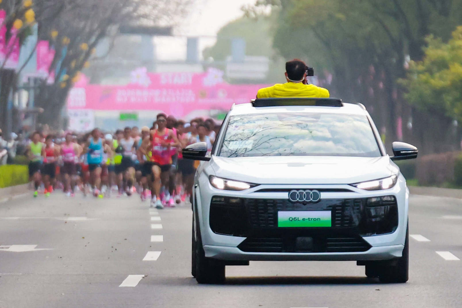3月22日,2026无锡马拉松燃情开赛,来自世界各地的3.5万名跑者齐聚蠡湖之畔,在素有“最美樱花赛道”美誉的赛道上,共同感受江南盛地的独特魅力。作为世界田联金标赛事,2026无锡马拉松报名总人数超过49.5万人,创下中国及亚洲马拉松新纪录,开赛后更以抖音热榜第一、微博话题阅读量超8.9亿掀起现象级热度。而作为本次赛事的官方唯一指定用车品牌,一汽奥迪携Q6L e-tron家族及A6L e-tron豪华纯电阵容全程护航,以领先的智电科技为赛事高效运行提供坚实保障,并与广大跑者一道诠释突破进取的精神力量。