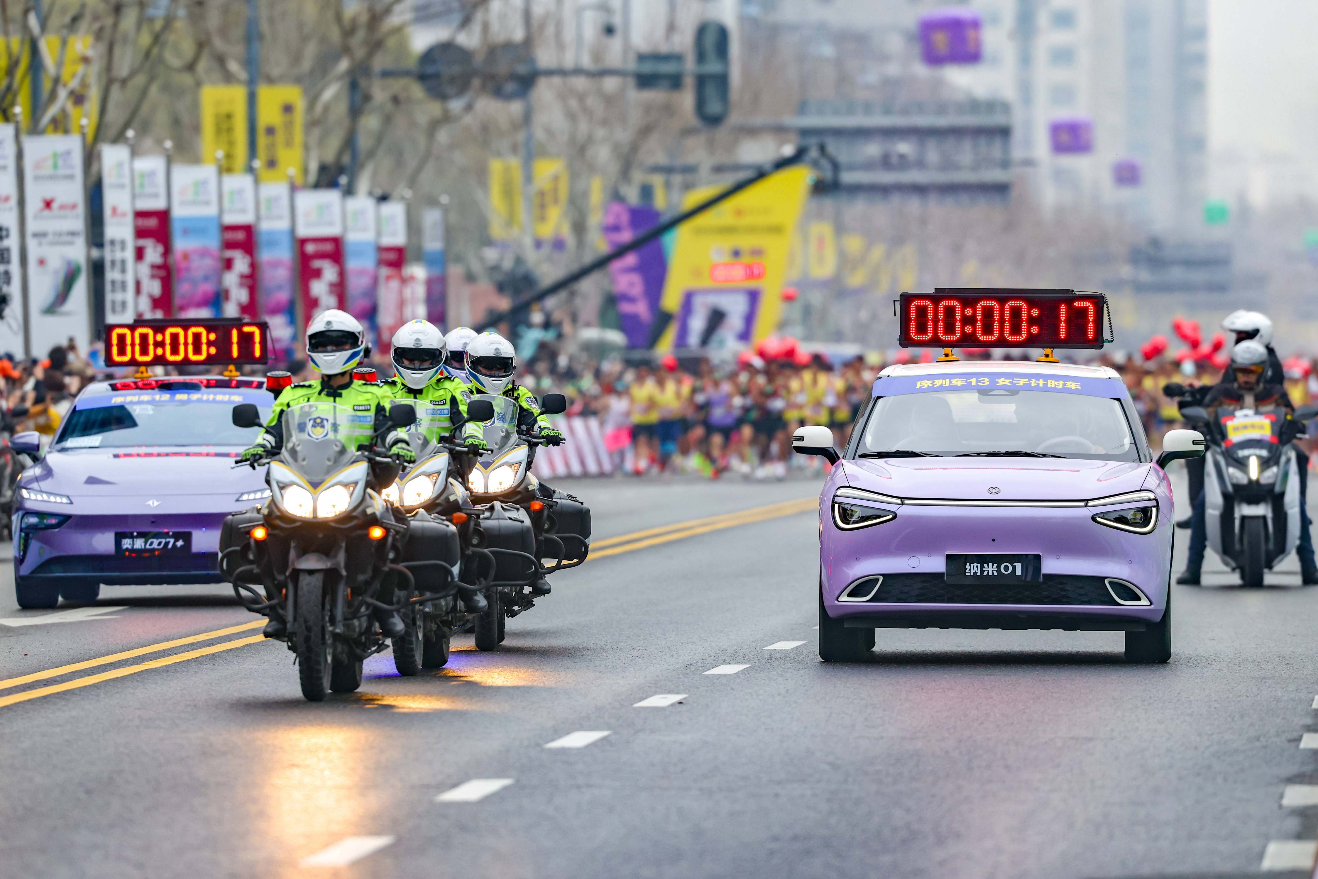 奕派007系列凭借“性能驾控、超能智慧、高能颜值、全能品质”四大核心优势,成为赛事保障中的核心力量。其中,奕派007+以14万级唯一搭载激光雷达的四驱轿跑这一硬核实力,化身“赛事领航者”,全程为跑者提供精准、可靠的计时领航服务。“大美智能国民车”纳米01既是年轻人的“精致生活搭子”,更是赛场上的“全能跑友搭子”,凭借灵巧的空间布局与精准的操控性能,灵活穿梭于赛道周边,轻松助力跑友掌控节奏。“大舒适家”奕派008凭借超5米车长、超3米轴距的超大尺寸,搭配真三排大六座灵活布局,为赛后疲惫的跑者打造专属“移动休憩室”。“国民智趣纯电SUV”纳米06融合“城市通勤+户外游乐”的双重基因,既为赛事提供舒适的移动休憩空间,也为跑友带来了智趣用车新体验。