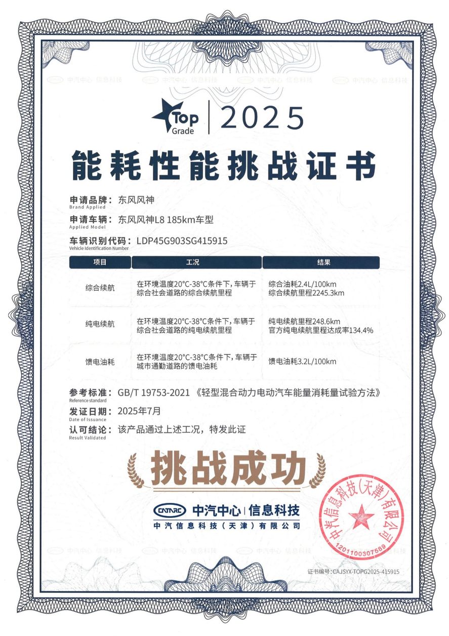 风神L8获得了中汽中心“零甲醛”汽车权威认证
