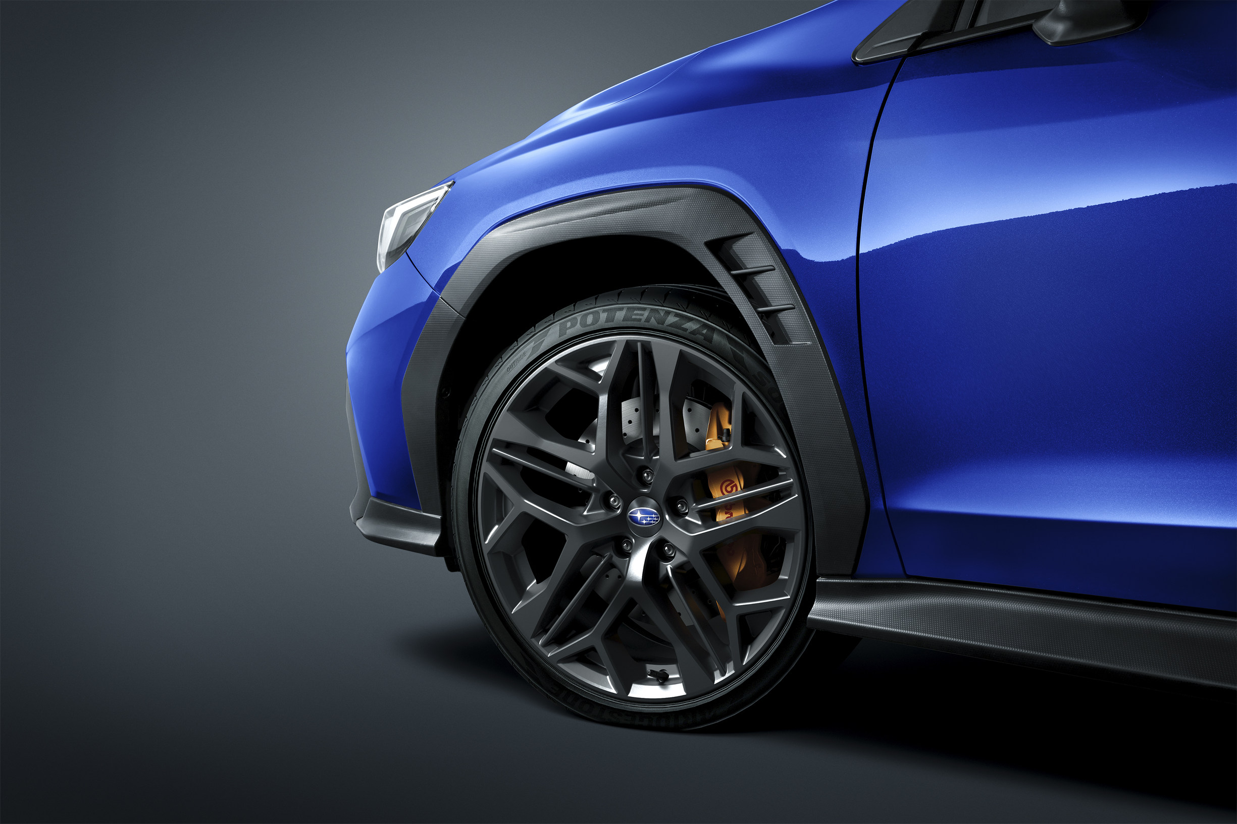 WRX tS车型配备专属的19英寸铝合金运动轮毂,除了视觉上带来的冲击力,更是轻量化与高刚性的结合。轮毂内,Brembo高性能制动卡钳使用了前六活塞、后两活塞的黄金组合,强劲而稳定的制动性能,为驾驭澎湃动力提供了充足的“底气”。