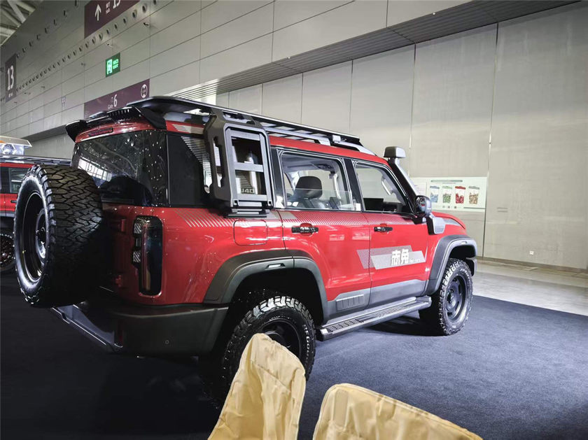 BJ40增程赤兔版定位“超级增程智能硬派SUV”,是硬派越野圈首款高颜值、高性能的官方改装量产车。恰逢农历丙午马年,其专属“赤兔红”车漆与“马年开赤兔,好运挡不住”的寓意相得益彰。该车出厂即配备深度越野套件:835mm涉水喉、双向可调氮气减震、全地形轮胎及三把差速锁,涉水深度达835mm。扩充轮眉、专属拉花、车顶平台等设计,实现了功能与美学的统一,让用户免去后期改装烦恼,合法畅行。