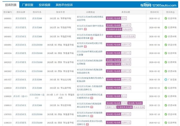 第三方投诉平台的数据直观反映了沃尔沃凸轮轴故障问题的严重性。据车质网统计,从去年11月至今,关于沃尔沃汽车发动机电动机故障的投诉中,凸轮轴故障占到了七成以上。在黑猫投诉等平台上,反映这一问题的消费者也不在少数。社交媒体和汽车论坛上,关于沃尔沃凸轮轴故障的吐槽和投诉更是铺天盖地,车主们甚至将凸轮轴戏称为“凸轮咒”,足见该问题的普遍性和严重性。