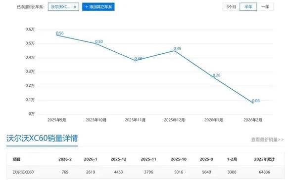 沃尔沃凸轮轴故障事件的影响已经逐渐显现。据新民周刊报道,沃尔沃主销车型XC60全国零售量自2025年6月历史高点7179辆逐月下滑,2026年1月已降至2619辆,2月份销量更是只有769辆。这一数据无疑是对沃尔沃品牌信任度下降的直接反映。作为一个以“安全”为核心卖点的品牌,沃尔沃在核心部件频发故障且处理敷衍的情况下,正在严重透支消费者的信任。如果沃尔沃继续坚持这种傲慢和失信的态度,那么市场终将会给出相应的回答——那就是销量的持续下滑和品牌形象的彻底崩塌。