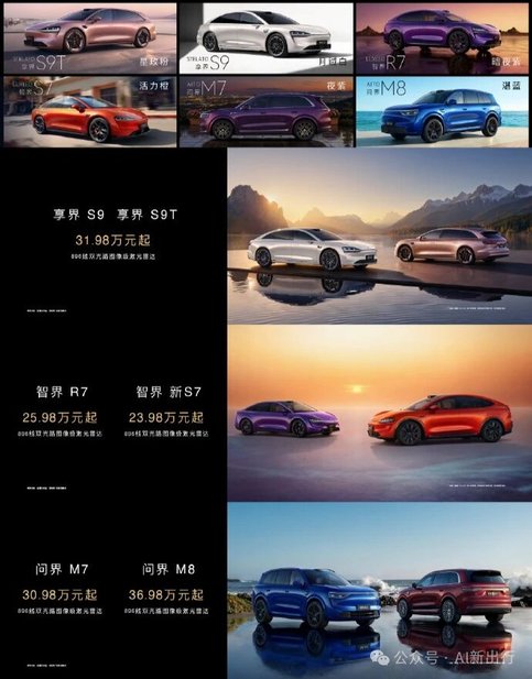 从家用刚需的问界M6、M7、M8,到商务豪华的享界S9,再到年轻运动的尚界Z7、智界R7,华为鸿蒙智行已经完成从20万级到50万级、从SUV到轿跑、猎装的全品类覆盖,真正做到“每一类用户都能找到适合的智能车”。
