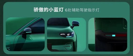 零跑A10在细节设计上独具匠心:前脸采用三段式“微笑”大灯,尾部呼应“哈哈”尾灯造型,极具品牌辨识度,点亮瞬间即传递出温暖幸福的视觉语言。全车分布的6处“骄傲的小蓝灯”作为辅助驾驶状态指示灯,让智驾系统的运行状态一目了然,赋予科技以安全感。此外,“会呼吸”的主动式进气风道不仅优化了散热性能,更显著提升了整车续航效率。