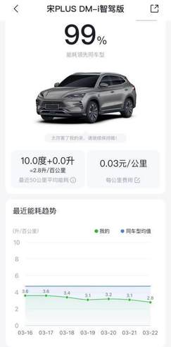 对于必须用油的场景比亚迪也给出了答案,OTA后百公里2.6L油耗,加油也不心疼。即便跑长途需要烧油,比亚迪插混同样底气十足。第五代DM技术通过OTA升级,百公里亏电油耗已优化至2.6L,再创全球插混油耗新低。这意味着,即使在亏电状态下行驶,每公里油费成本也仅约0.23元。
