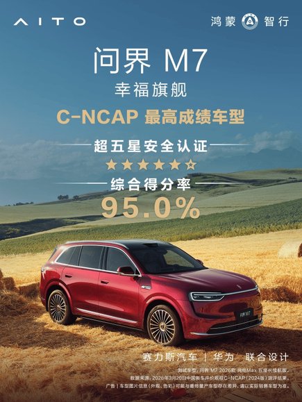 综合得分率95%!问界M7成为C-NCAP(2024版)最高成绩车型