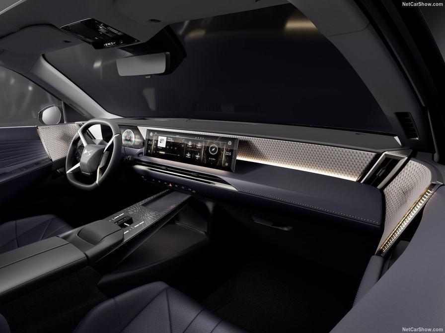 配置上,DS提供14扬声器音响、前排座椅通风/加热/按摩、夜视系统和抬头显示,以及基于STLA Medium平台技术的主动扫描悬架。N°7也有L2级辅助驾驶能力,可以在70-140km/h车速下进行打灯变道,同时能根据道路宽度和弯角调整车速。