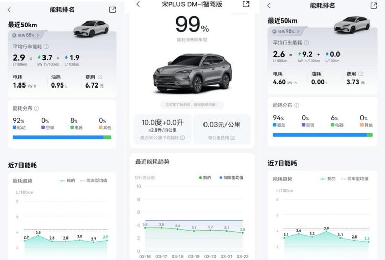 对于必须用油的场景比亚迪也给出了答案,OTA后百公里2.6L油耗,加油也不心疼。即便跑长途需要烧油,比亚迪插混同样底气十足。第五代DM技术通过OTA升级,百公里亏电油耗已优化至2.6L,再创全球插混油耗新低。这意味着,即使在亏电状态下行驶,每公里油费成本也仅0.23元左右。