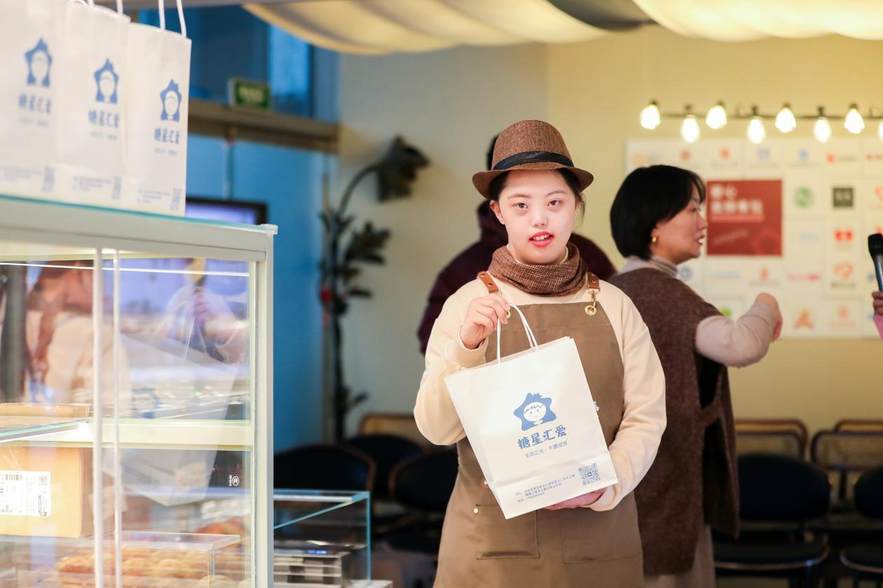 最终,她选择了从检察院辞职,发起了“糖星汇爱”项目,全身心投入到公益事业中。5年来,她带领团队开展了500余人次的职业培训,让6名特殊的“心青年”在烘焙店里领到了人生第一份工资,实现了辅助性就业。