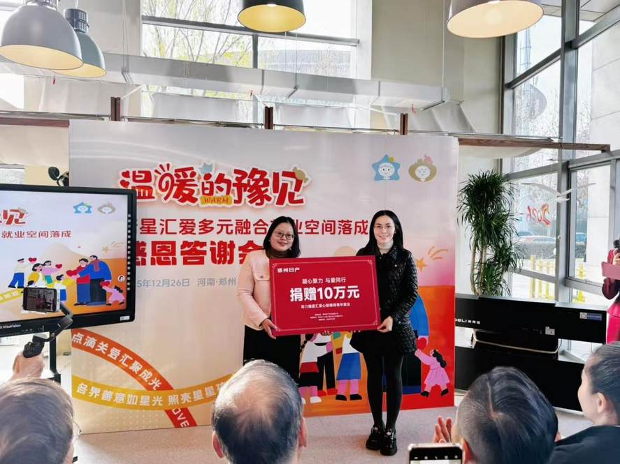 因此,当得知“糖星汇爱”多元融合就业中心选址郑州市图书馆裙楼、却因设备资金缺口而发愁时,郑州日产毅然决定捐赠10万元。