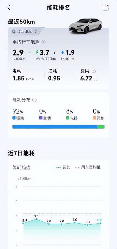 城区用电:一周一充,通勤成本每公里5分钱。对于日常通勤来说,比亚迪大电池DM-i车型给出了“用电自由”的解决方案。2026款秦PLUS DM-i等车型已将CLTC纯电续航提升至210km,直接杀入8万级市场。这意味着,以日均通勤30公里计算,一次充电足以覆盖一整周的出行需求。对于有有家充桩的用户,每度电费仅0.5元,年能耗成本不足4000元。而同级别燃油车油耗普遍在7.5L/100KM,在8.53元油价下,一年20000km油费接近1.3万元。仅此一项,插混车主一年就能省下近万元。