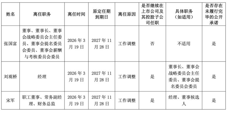 根据北汽蓝谷公告,张国富于3月19日起不再担任公司十一届董事会董事、董事长、董事会战略委员会主任委员、董事会提名委员会委员、董事会薪酬与考核委员会委员职务。