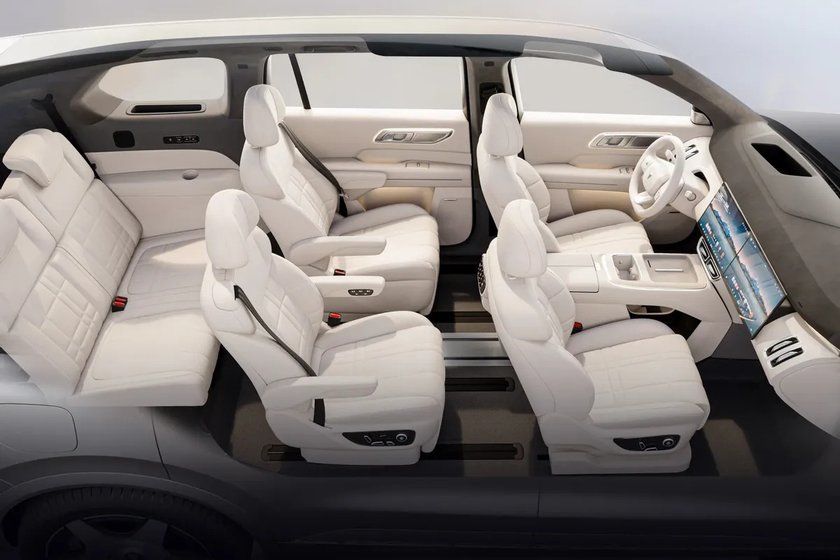 外观层面,深蓝S09后驱Ultra超长续航版完全延续在售车型的设计语言,车头的贯穿式灯带提升了前脸的辨识度与科技感,侧面采用隐藏式车门外拉手,在优化风阻的同时让车身线条更简洁。车身尺寸保持5205/1996/1800毫米,轴距达到3105毫米,标准的中大型SUV身材搭配大六座布局,第二排与第三排的腿部、头部空间都能满足成年乘客长时间乘坐,第三排不再是“应急座椅”,这也是该车面向家庭用户的核心空间优势。