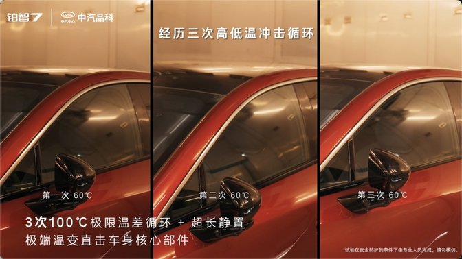“整车极寒极热循环冲击”覆盖-40℃到60℃的极限温差,相当于从寒冬腊月的内蒙古牙克石,到七八月份的新疆吐鲁番。3轮急剧、宽幅的温度变化对车辆的电子电气系统、密封件、内饰材料等都构成严峻考验。测试后,车辆外观无变形、车机功能操作全部正常。意味着中国境内任意气温环境变化都不会对车辆造成损坏。
