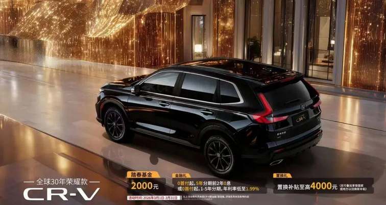 更关键的是,随着3月商务政策的落地,这台传奇车型的门槛正在被进一步拉低。结合东风本田推出的限时购车福利,以及终端市场的以旧换新补贴,CR-V的实际终端价格已经进入了14万级区间 。截至3月31日,CR-V全球30年荣耀款0首付起,5年分期前2年0息,或0首付起,1-5年分期,年利率低至1.99%,更有2000元踏春基金等你来拿,置换补贴至高4000元。