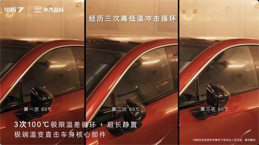 “整车极寒极热循环冲击”覆盖-40℃到60℃的极限温差,相当于从寒冬腊月的内蒙古牙克石,到七八月份的新疆吐鲁番。3轮急剧、宽幅的温度变化对车辆的电子电气系统、密封件、内饰材料等都构成严峻考验。测试后,车辆外观无变形、车机功能操作全部正常。意味着中国境内任意气温环境变化都不会对车辆造成损坏。