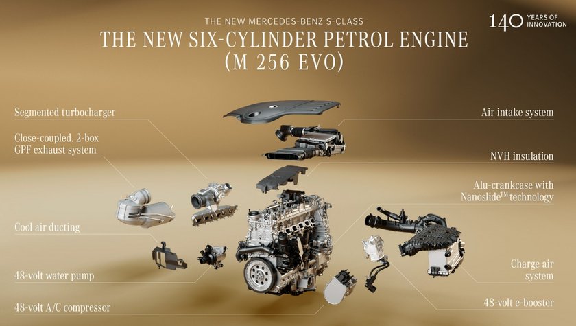 S 580搭载奔驰全新开发的M177 Evo V8高性能发动机,最大功率395kW,匹配17kW的48伏ISG智能电机。