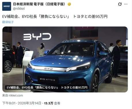 “名为普惠、实为排他” 看比亚迪如何以硬核力破局日本补贴新规