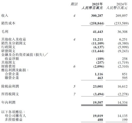 奇瑞的财报,则呈现出截然不同的盈利图景。2025年,奇瑞实现营收3003亿元,增长11.3%;净利润195亿元,暴增36.1%。更关键的是,其净利润率从5.3%提升至6.5%,新能源业务毛利率达到8.8%。