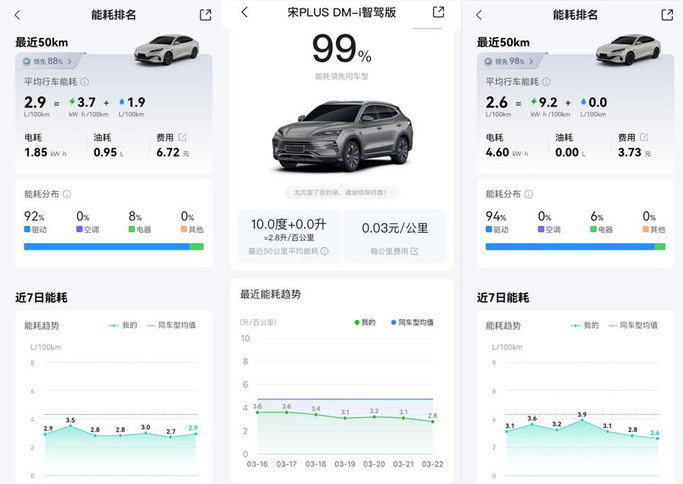 对于必须用油的场景比亚迪也给出了答案,OTA后百公里2.6L油耗,加油也不心疼。即便跑长途需要烧油,比亚迪插混同样底气十足。第五代DM技术通过OTA升级,百公里亏电油耗已优化至2.6L,再创全球插混油耗新低。这意味着,即使在亏电状态下行驶,每公里油费成本也仅0.23元左右。