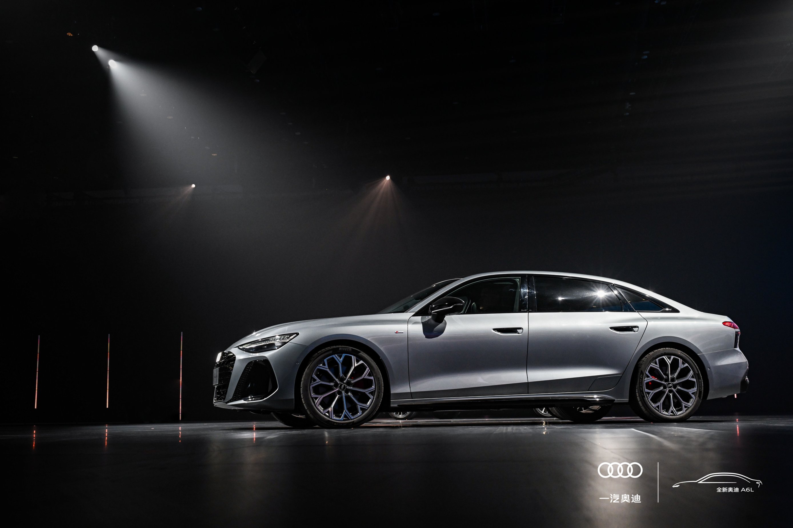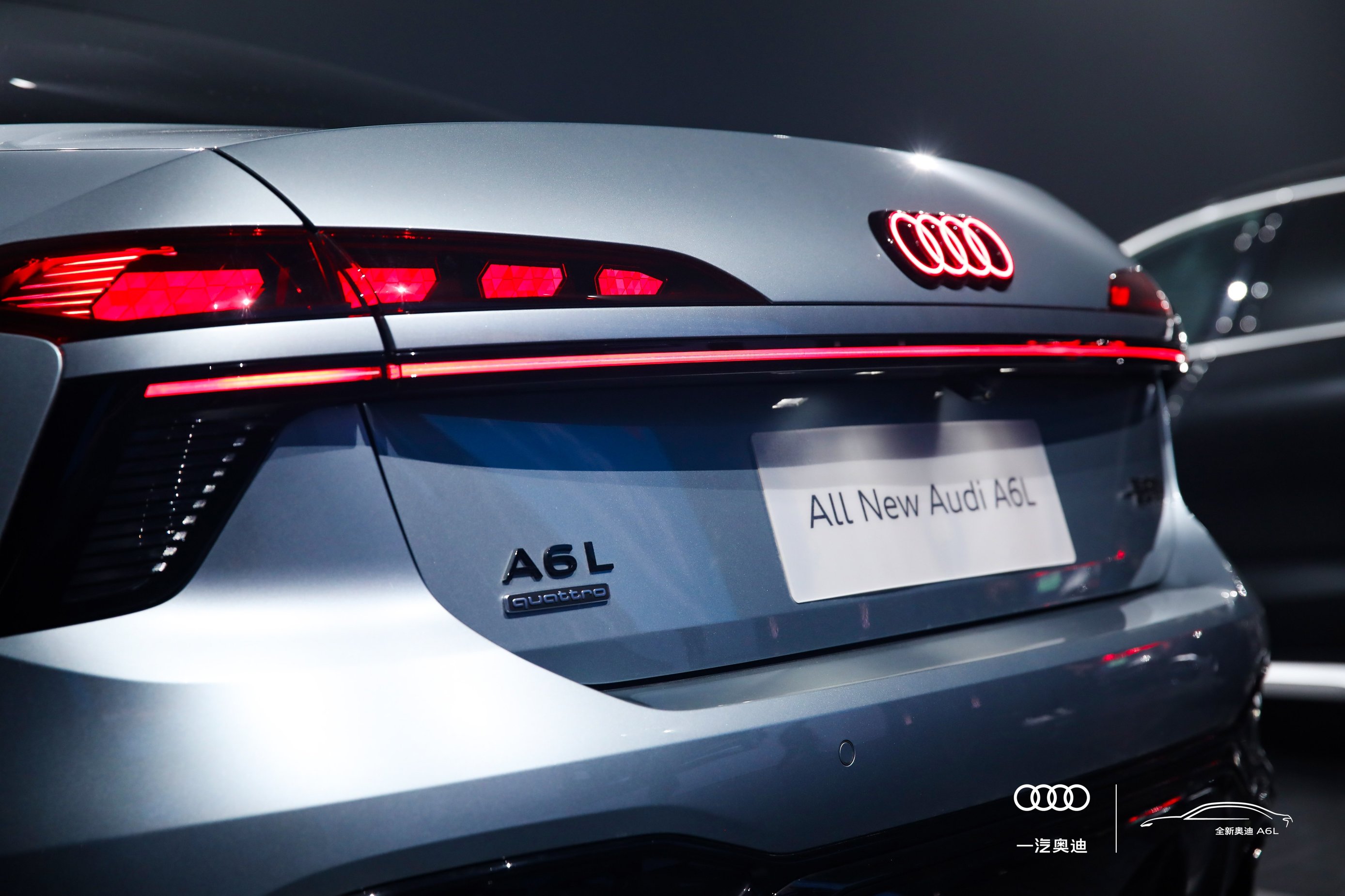 车身侧面造型修长低趴,呈现出更强的轿跑姿态,半隐藏式电子门把手兼顾了科技感和风阻优化。尾部配备运动风格后包围与第二代OLED尾灯,贯穿式尾灯与奥迪A8L形成传承,搭配真实双边排气,运动感与豪华感兼具。