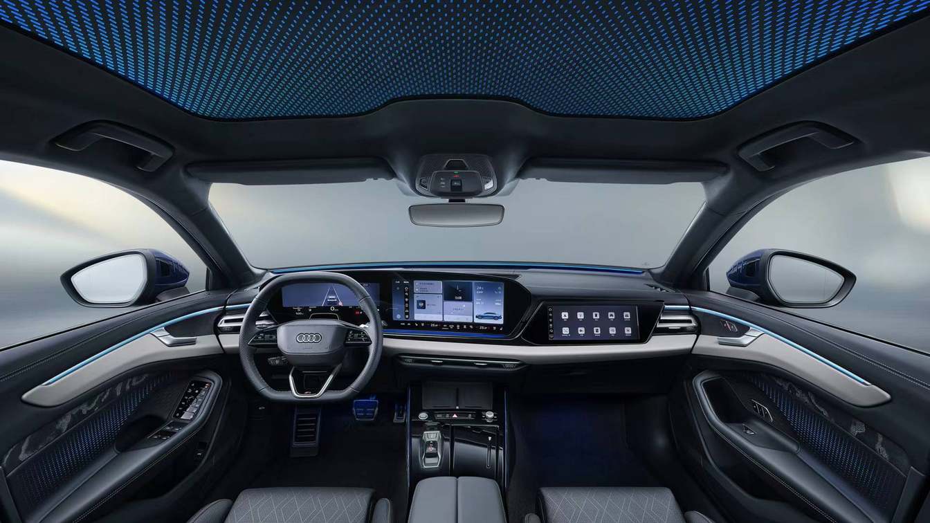 座椅方面,全新奥迪A6L提供了前所未有的舒适体验。支持18向电动调节,并配备加热、通风、按摩功能,让驾驶者在长途旅行中也能享受到家一般的温馨与惬意。车内搭载的1.96平方米9分区智能全景天幕,依托六个可独立调控的区块,实现了阳光与隐私的随心掌控。夜幕降临,由112颗RGB LED编织而成的银河星空顶与30色氛围灯交互联动,营造出惊艳的豪华光影效果,让每一次出行都成为一场浪漫的旅程。