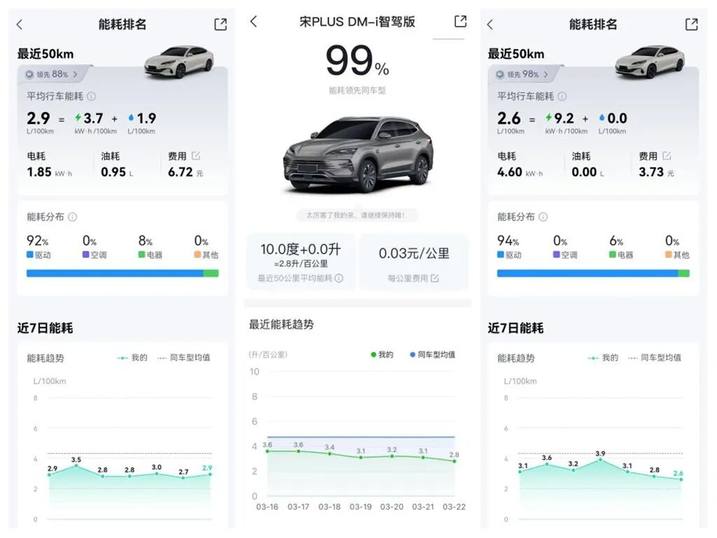城区用电:一周一充,通勤成本每公里5分钱。对于日常通勤来说,比亚迪大电池DM-i车型给出了“用电自由”的解决方案。2026款秦PLUS DM-i等车型已将CLTC纯电续航提升至210km,直接杀入8万级市场。这意味着,以日均通勤30公里计算,一次充电足以覆盖一整周的出行需求。对于有有家充桩的用户,每度电费仅0.5元,年能耗成本不足4000元。而同级别燃油车油耗普遍在7.5L/100KM,在8.53元油价下,一年20000km油费接近1.3万元。仅此一项,插混车主一年就能省下近万元,堪称省钱的好搭档。