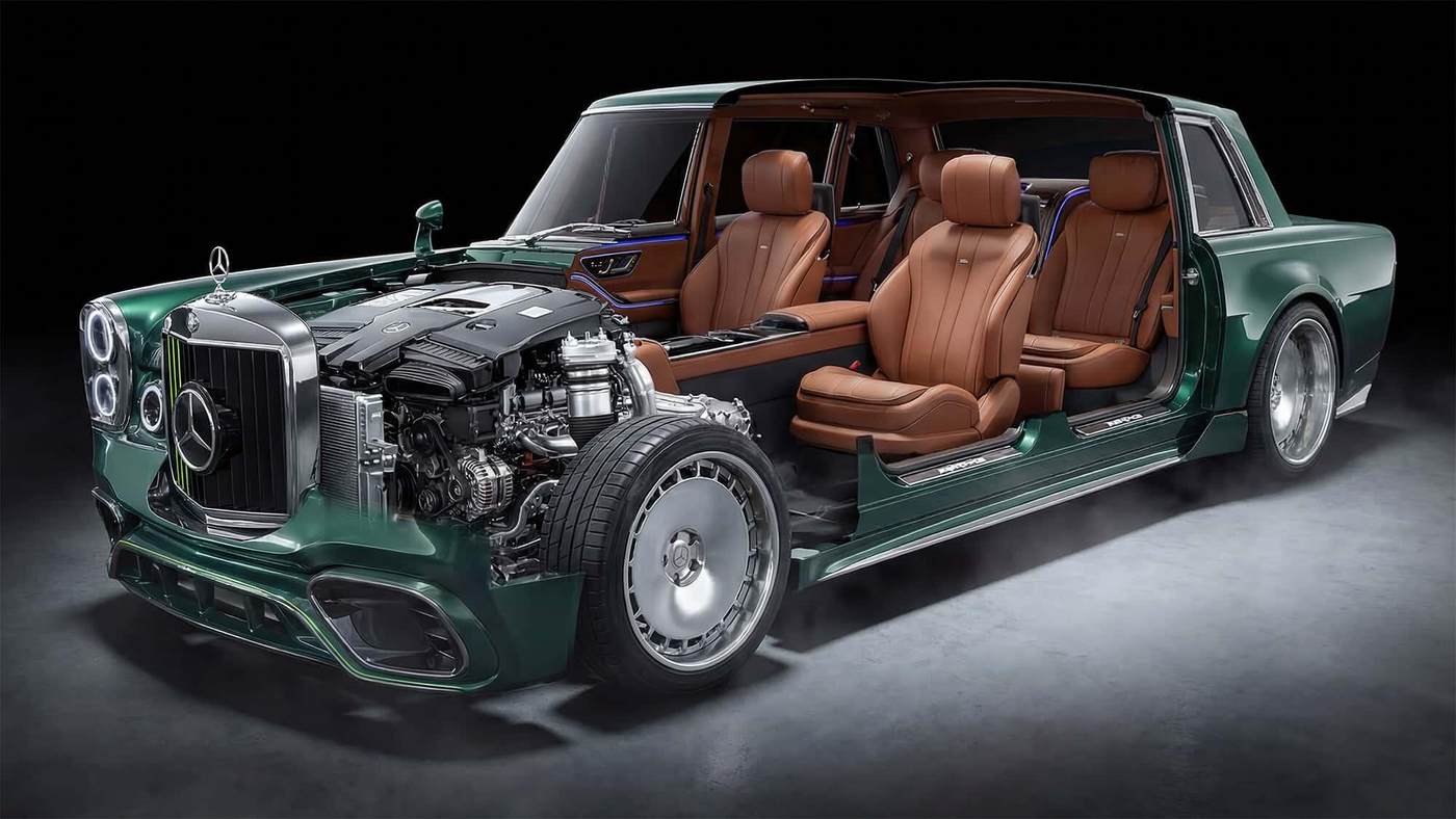 正如之前所提到的,技术基础来自于当前的梅赛德斯-AMG S 63 E Performance。为了打造Final Boss项目,S-Klub LA 的公司老板Ed Sarkisyan选取了2024年款的S级长轴版(V 223)。他首先亲自驾驶这辆新车,之后便决定基于此平台开展一个全新的项目。他之所以选择将W 100与现代的S级长轴版结合,认为两者的轴距几乎相同,因此极具可行性。