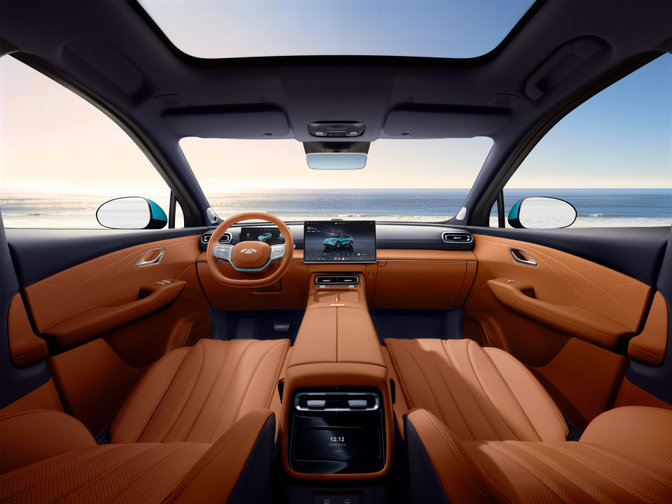 内饰方面。风云T9L采用环抱式座舱设计,提供3款不同内饰配色,包括暖霞金橙、水墨霁蓝、极光紫境。