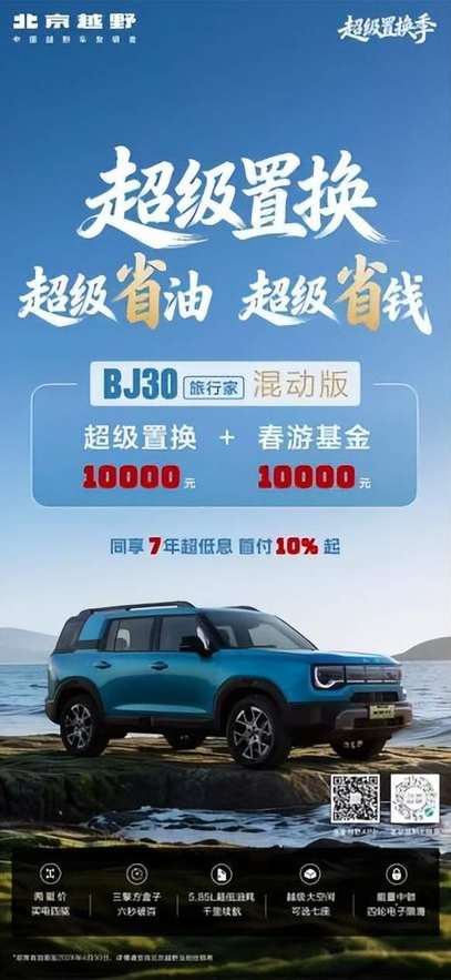 近日,为了回馈广大消费者,北京越野开启超级置换季活动。该活动分为两部分,第一部分以“超级置换+超级省油+超级省钱”的组合拳,针对BJ30旅行家混动版、BJ40增程元境智行两款车型,推出了极具竞争力的置换政策;第二部分则为BJ40增程赤兔版和BJ40探险家推出了专属优惠福利,让更多新老车主感受到了品牌的十足诚意。此次活动时间3月24日至4月30日。
