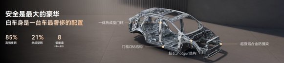 • 全维安全: 采用磐石笼式吸能太空舱结构,高强度钢板覆盖率达85%,热成型钢占比21%,抵御碰撞能力出众。全系标配7安全气囊,包括48L双腔远端气囊与2080mm超长侧气帘,全方位保护乘员安全。电池搭载犀牛电池技术,历经挤压、穿刺、火烧、涉水等严苛测试,安全性拉满,为首任非营运车主提供三电系统终身质保,用车更安心。