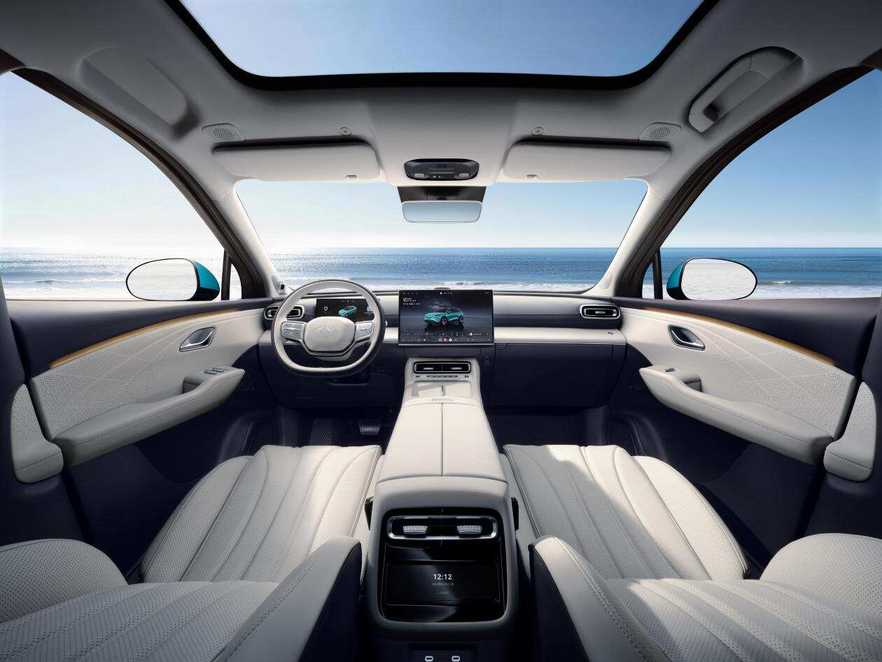 座舱内配备17.3英寸悬浮中控屏、后排吸顶屏,搭载3nm制程的8678座舱芯片与风云UI 2.0系统,支持“任务魔方”个性化功能定制。全车配备23扬声器伯牙之音音响系统,配合车载冷暖冰箱、流萤氛围灯光效,带来前所未有的感官享受。