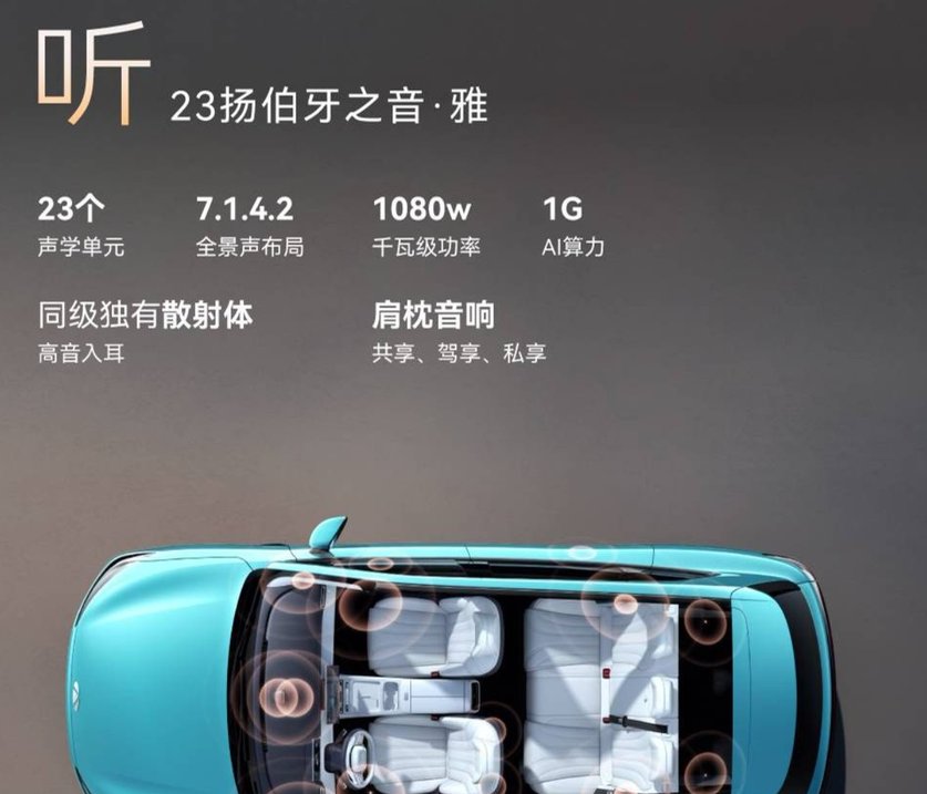 内饰叫文房雅居,23扬声器伯牙之音音响,7.1.4.2全景声布局。