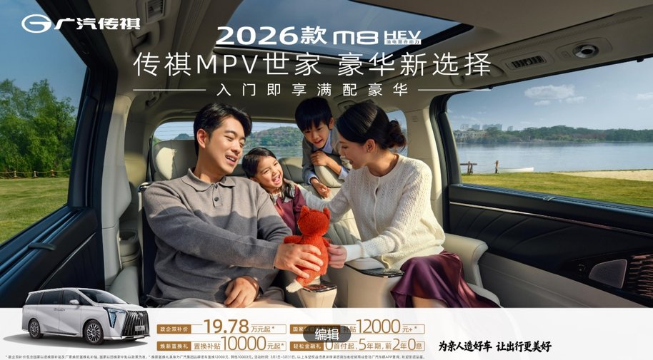 从十余年品牌积淀到全矩阵产品布局,从技术突破到诚意福利,传祺 MPV 世家始终以用户为中心,用硬核产品与实在福利,满足商务与家庭全场景出行需求。三月出行热潮之下,传祺 MPV 以 M8 HEV、E8 HEV 双核心车型,分别锚定豪华与家用赛道,以质价比重构市场格局,让豪华触手可及、让家用更具品质,持续为千万用户解锁美好出行生活。