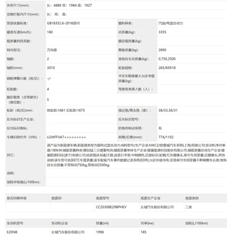 动力方面,此次坦克300申报了Hi4-T和Hi4-Z两个版本车型,Hi4-T将配备非解耦四驱结构,主打强悍越野性能,带大梁结构;Hi4-Z则主打泛越野、长续航。将搭载2.0T发动机+电机组成的插混动力系统,其中发动机最大功率为185kW,传动系统仍将匹配9HAT变速箱。续航方面,匹配蜂巢能源三元锂电池,59.6kWh和37.1kWh两种容量,纯电续航里程分别为200km和105km。