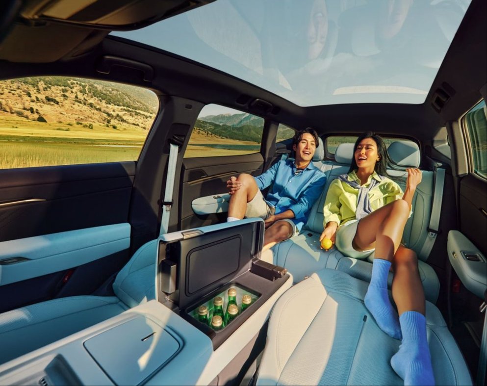 后排同样是关怀的重点。座椅靠背支持最大125°的电动调节,并配备加热功能,确保长途乘坐的舒适性。同级独有的左右折叠桌板与后排充电拓展口,兼顾了商务办公与家庭娱乐需求。更为巧妙的是,整车座椅放倒后可形成一个完全纯平的空间,可选配原厂售后充气床垫,车内瞬间变为“双人观景大床房”,拓展了车辆的使用场景。