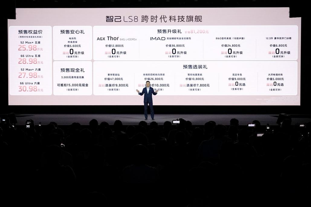 3月26日,跨时代科技旗舰SUV——智己LS8正式开启预售。新车提供大五座和大六座版本,25.98万元~30.98万元预售权益价震撼登场,宣告 “最强8系”强势入局!作为上汽集团巅峰技术的集大成之作,智己LS8拥有颠覆想象的先锋科技、大厂严选的顶级品质,30万内即可拥有超越百万级的前沿智能与奢享体验,一举击穿大型SUV市场价值天花板,彻底终结中国品质家庭的选车纠结,成就“一步到位”的旗舰之选!