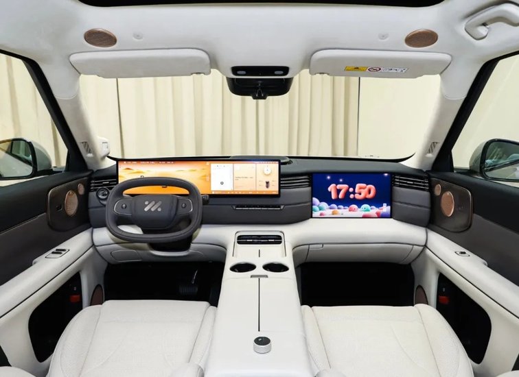 内饰方面,智己LS8同样延续家族式最新的布局,采用27.1英寸5K MiniLED屏和15.6英寸3K MiniLED副驾娱乐屏组合,搭配椭圆型三辐式多功能方向盘,运用怀挡式换挡。