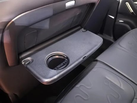 第二排的空间其实是完全够用了,毕竟轴距在这里摆着呢,并且座椅的舒适程度也是比较高的,丝毫没有小板凳的感觉。很多人都知道大6座SUV或者MPV车型会配备二排小桌板,但是你能想象在这台零跑A10上,居然也有小桌板,这个配置确实让我有点没想到。