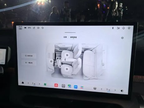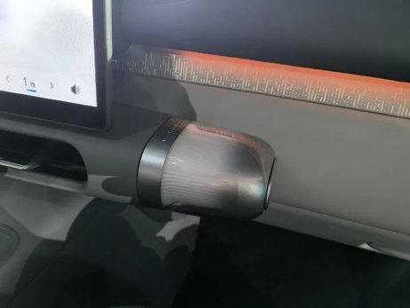而在屏幕的右下方有一个单独突出的设计,这里是放置香氛系统的,并且还有独立的开关可以物理控制,开启以后香氛系统还有光源发出,这种温馨的效果也是直接拉满了,我个人还是非常喜欢这个设计的。