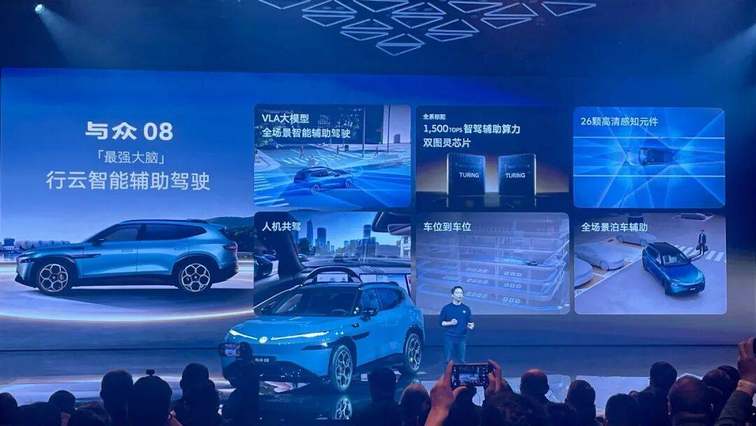 再看智能化,与众08搭载的是骁龙8295P芯片,且车机系统的AI智能助手融合了大语言模型。此外,该车全系标配小鹏VLA全场景驾驶辅助系统,拥有同级最高1500TOPS总算力的智驾芯片亦为全系标配,可实现多项L2级驾驶辅助功能。