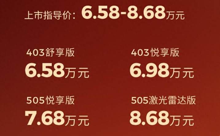 2026年3月26日,零跑汽车正式推出全新A平台首款战略车型——零跑A10,四款车型官方指导价:403km舒享版6.58万元,403km悦享版6.98万元,505km悦享版7.68万元,505km激光雷达版8.68万元。