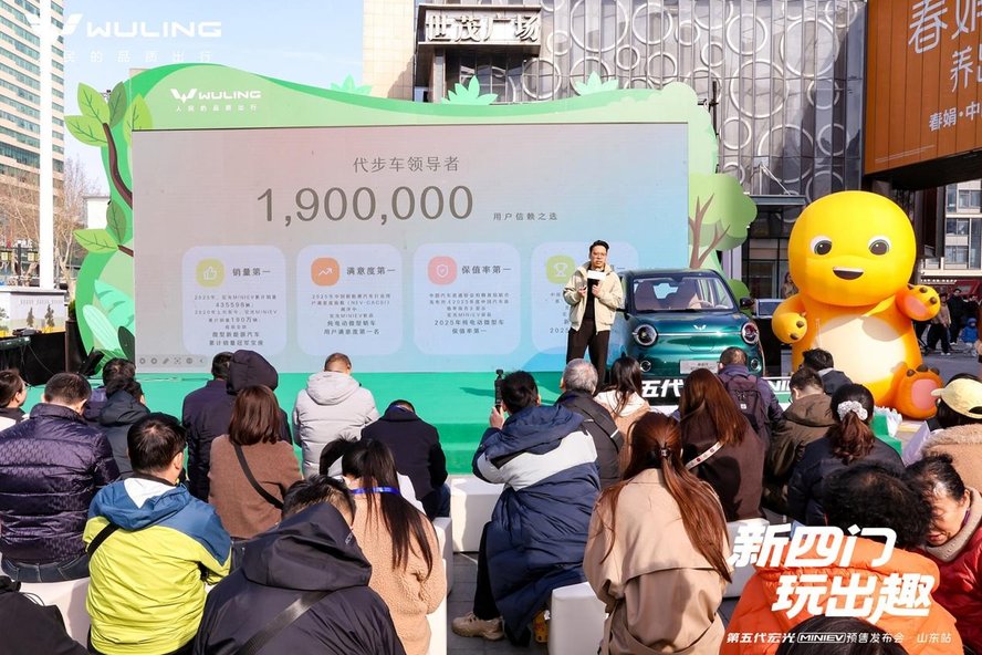 2026年3月15日,济南世茂国际广场化身为一片欢乐的海洋,“新四门 玩出趣——第五代宏光MINIEV预售发布会·山东站”在此盛大举行。这场别开生面的发布会,不仅迎来了“人民的代步车”的又一次重磅进化,更携手潮流IP“Q宝”与“奶龙”,将快乐基因注入每一个细节。通过静态展示与动态试驾的沉浸式体验,新车在玩趣美学设计、四门四座空间、进阶驾乘舒适性以及全维安全守护等方面的全面进化,赢得了现场体验者的一致好评。在活动现场,五菱官方正式公布了新车的预售价格区间为4.28万元至5.68万元,以极具诚意的定价,为期待已久的消费者带来了惊喜。