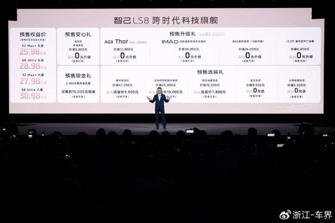 3月26日,跨时代科技旗舰SUV——智己LS8正式开启预售。新车提供大五座和大六座版本,25.98万元~30.98万元预售权益价震撼登场,宣告 “最强8系”强势入局!作为上汽集团巅峰技术的集大成之作,智己LS8拥有颠覆想象的先锋科技、大厂严选的顶级品质,30万内即可拥有超越百万级的前沿智能与奢享体验,一举击穿大型SUV市场价值天花板,彻底终结中国品质家庭的选车纠结,成就“一步到位”的旗舰之选!
