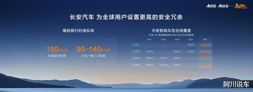更具里程碑意义的是长安的普惠承诺。当前,爆胎稳行功能多为豪华车选配,用户需额外支付数千元费用。而长安坚信:“安全就不该有高低配,安全就该标配”,在车展发布会上郑重官宣:自2026年5月1日起,所有搭载天枢智能的全新车型和改款车型,包括长安启源、深蓝汽车、阿维塔三大新能源品牌,以及长安汽车的燃油车,均将搭载爆胎稳行功能,不收取任何额外费用。