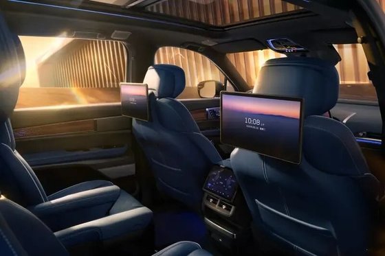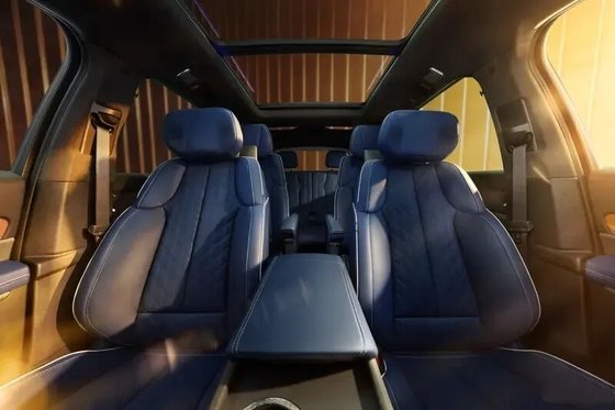 内饰部分,凯威德主打美式豪华与前沿科技相融的座舱氛围,车内大面积覆盖软性包覆材质,辅以细腻缝线和高档饰板点缀,质感拉满。座椅布局采用2+2+2六座设计,既能满足家庭出行,也能适配商务接待场景。车内配备一块33英寸超大曲面连屏,科技感直接拉满,第二排配备独立电动调节座椅,第三排空间也经过精细化优化,成年乘客落座也能获得舒适的乘坐体验。