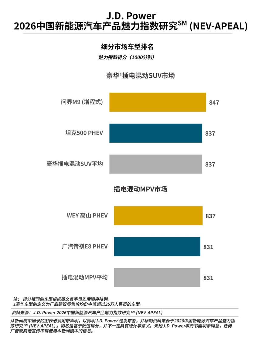 3月26日,全球领先的消费者洞察与市场研究机构J.D. Power|君迪发布2026中国新能源汽车产品魅力指数研究SM(NEV-APEAL),是J.D. Power第六年在中国发布这一研究,该研究衡量了新能源汽车车主在购车2至6个月内拥有和驾驶车辆的各方面体验,运用J.D. Power独有的消费者满意度指数模型,围绕拥车、驾车、补能等各方面来衡量车主对新能源汽车产品魅力的感受与满意程度,是汽车厂商设计和开发新能源产品的重要参考依据。