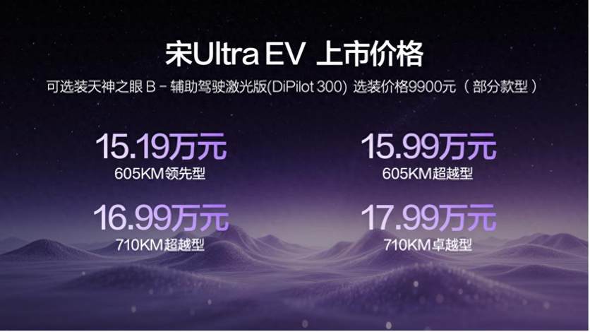 3月26日,比亚迪宋Ultra EV 正式上市,共4款车型,包括605KM领先型、605KM超越型、710KM超越型和710KM卓越型,官方指导价15.19万—17.99万元。新车全系搭载比亚迪第二代刀片电池及闪充技术,同时拥有710公里CLTC纯电续航、天神之眼B、云辇-C、TBC高速爆胎稳行系统等豪华配置,为消费者带来全新的纯电出行方式,全面开启闪充时代。